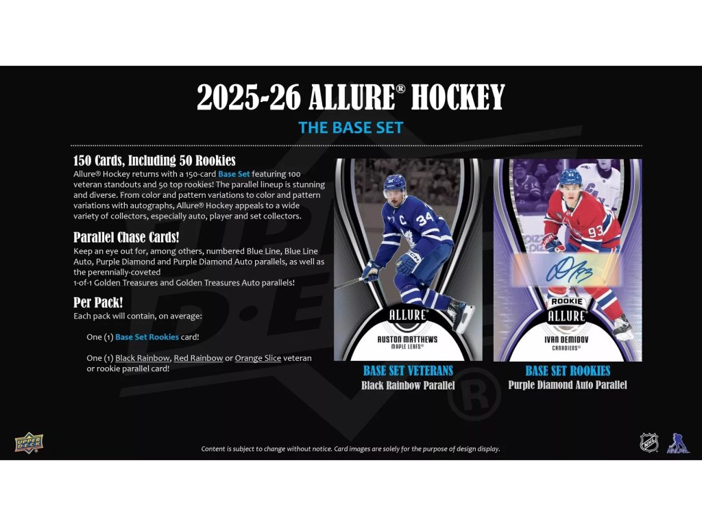 Allure je ideální volbou pro sběratele, kteří mají rádi barevné karty, paralelky a napínavý break v každém balíčku.